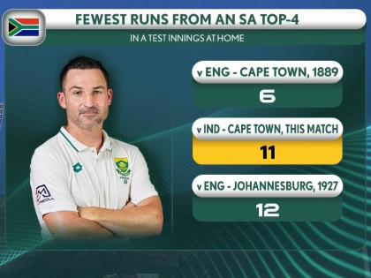 १९२७ मध्ये घरच्या मैदानावर शेवटचं आफ्रिकेचे ६ फलंदाज ३५ किंवा त्यापेक्षा कमी धावांवर ( ६-२६ वि. इंग्लंड, जोहान्सबर्ग) माघारी परतले होते. एकंदर १९३२ नंतर दोनवेळाच आफ्रिकेवर ही नामुष्की ओढावली होती. २०१५ नंतर आज आफ्रिकेचे ६ फलंदाज ३५ किंवा त्यापेक्षा कमी धावांवर तंबूत परतले आणि दोन्ही वेळा भारताविरुद्ध त्यांनी नांग्या टाकल्या.