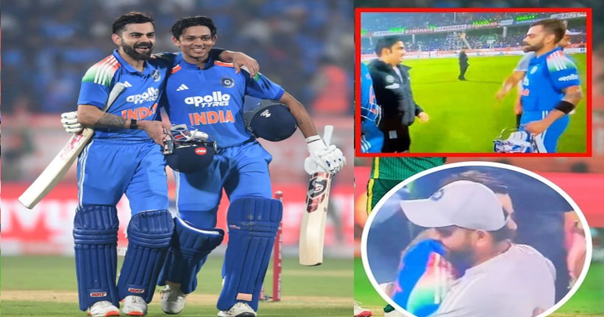 विशाखापट्टणम येथे झालेल्या तिसऱ्या एकदिवसीय सामन्यात दक्षिण आफ्रिकेने दिलेल्या २७१ धावांच्या आव्हानाचा भारतीय संघाने यशस्वी जयस्वालचं नाबाद शतक आणि रोहित शर्मा व विराट कोहलीने ठोकलेल्या अर्धशतकांच्या जोरावर ९ गडी राखून पाठलाग केला. त्यानंतर विराट कोहलीने आपले सर्व सहकारी आणि सहकाऱ्यांची गळाभेट घेत तसेच हस्तांदोलन करत विजयाचा आनंद साजरा केला. त्यावेळी इतर खेळांडूंसोबत प्रशिक्षक गौतम गंभीर हासुद्धा अभिनंदन करण्यासाठी पोहोचला होता. विराट कोहलीने त्याच्याशीही हस्तांदोलन केले. मात्र त्याच्या मागून आलेल्या रोहित शर्मा याची विराटने ज्या उत्साहाने गळाभेट घेतली तसा उत्साह गंभीरशी हस्तांदोलन करताना दिसला नाही. आता विराट कोहलीच्या गंभीर आणि रोहित शर्माची भेट घेतानाच्या बॉडी लँग्वेजची तुलना करत आहेत. तसेच गंभीरशी हस्तांदोलन करताना विराटने केवळ औपचारिकता निभावली, त्यात उत्साह दिसून आला नाही, असेही चाहते या भेटीचा व्हिडीओ पाहून म्हणत आहेत.