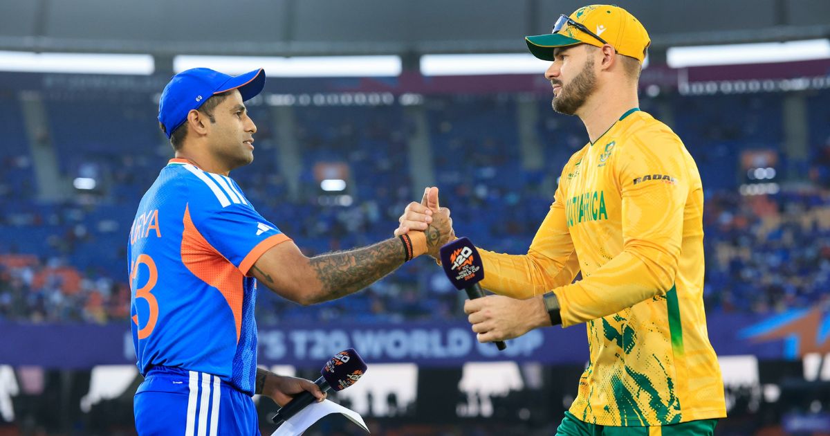 India vs South Africa, 43rd Match, Super 8 Group 1 : भारतीय संघ टी-२० वर्ल्ड कप स्पर्धेतील सुपर ८ मधील पहिल्या लढतीसाठी अहमदाबादच्या नरेंद्र मोदी स्टेडियमवर उतरला आहे. या सामन्यात नाणेफेकीवेळीच दक्षिण आफ्रिकेच्या कर्णधाराने सूर्याला चॅलेंज दिल्याचे पाहायला मिळाले. नाणेफेक जिंकून त्याने पहिल्यांदा फलंदाजी करण्याचा निर्णय घेतला.