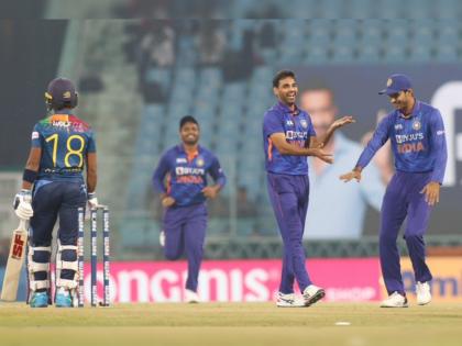 India vs Sri Lanka, 1st T20I Live Update : इशान किशन ( Ishan Kishan), रोहित शर्मा ( Rohit Sharma) आणि श्रेयस अय्यर ( Shreyas Iyer) यांच्या चौकार-षटकारांच्या आतषबाजीने लखनौ स्टेडियम दणाणून सोडले. या तिघांच्या फटकेबाजीच्या जोरावर भारताने २ बाद १९९ धावांचा डोंगर उभा केला. प्रत्युत्तरात भुवनेश्वर कुमारने ( Bhuvneshwar Kumar) पहिल्याच चेंडूवर श्रीलंकेला धक्का दिला आणि तिसऱ्या चेंडूवर आणखी एक विकेट घेताना दुसरा धक्का दिला. पण, पहिल्याच चेंडूवर मिळालेल्या विकेटवर काही क्षणासाठी भुवीलाही विश्वास बसत नव्हता. जेव्हा त्याला विकेट मिळाल्याचे समजले, तेव्हा त्याच्या चेहऱ्यावरील हसू थांबले नाही.