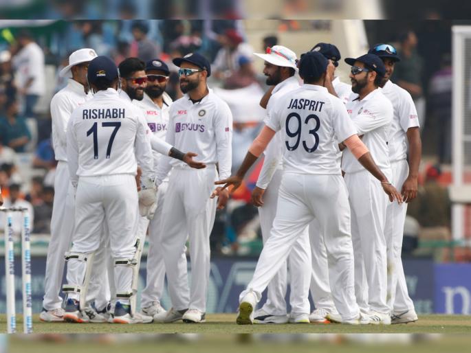 मयांक अग्रवाल ( ३३), रोहित शर्मा ( २९), हनुमा विहारी ( ५८), विराट कोहली ( ४५), श्रेयस अय्यर ( २७) व रिषभ पंत ( ९६) यांच्या योगदानानंतर रवींद्र जडेजाची बॅट तळपली. त्याने आणि आर अश्विनने ७व्या विकेटसाठी १३० धावांची भागीदारी केली. अश्विन ६१ धावांवर माघारी परतल्यानंतर ९व्या विकेटसाठी मोहम्मद शमीसह शतकी भागीदारी केली. भारताने पहिला डाव ८ बाद ५७४ धावांवर घोषित केला. जडेजा २२८ चेंडूंवर १७ चौकार व ३ षटकारांसह १७५ धावांवर नाबाद राहिला आणि शमीसह ( २०*) त्याने ९व्या विकेटसाठी ९४ चेंडूंत १०३ धावा जोडल्या.
