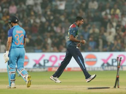 प्रत्युत्तरात इशान किशन ( २) दुसऱ्याच षटकात कसून रजिथाच्या गोलंदाजीवर त्रिफळाचीत झाला. पहिल्या चेंडूवर किशनची विकेट अन् अखेरच्या चेंडूवर शुबमन गिल ( ५) याला माघारी पाठवून रजिथने भारतावरील दडपण वाढवले. दिलशान मदुशंकाने तिसऱ्या षटकात पहिल्याच चेंडूवर पदार्पवीर राहुल त्रिपाठीची ( ५) विकेट घेतली अन् पुण्याच्या स्टेडियमवर सन्नाटा झाला. हार्दिक पांड्याही १२ धावांवर बाद झाला अन् भारत अडचणीत सापडला. चमिका करुणारत्नेही ही विकेट घेतली. भारताचे आघाडीचे ४ फलंदाज ३४ धावांवर माघारी परतले. दीपक हुडाही ९ धावा करून बाद झाला अन् भारताने ५७ धावांवर निम्मा संघ गमावला.