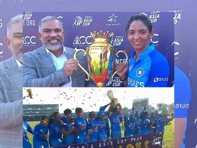 India vs Sri Lanka Women's Asia Cup 2022 Final : भारतीय महिला संघाने आशिया चषक २०२२ स्पर्धेत बाजी मारली. सलग आठव्यांदा आशिया चषक स्पर्धेच्या अंतिम फेरीत धडक मारणाऱ्या भारतीय महिलांचे हे सातवे जेतेपद ठरले. उपांत्य फेरीत पाकिस्तानवर रोमहर्षक विजय मिळवणाऱ्या श्रीलंकेच्या महिला संघाने फायनलमध्ये शरणागती पत्करली. रेणुका सिंगने ३-१-५-३ अशी उल्लेखनीय कामगिरी केली. राजश्री गायकवाड व स्नेह राणा यांनी प्रत्येकी दोन विकेट्स घेतल्या आणि श्रीलंकेला ९ बाद ६५ धावांपर्यंत रोखले.