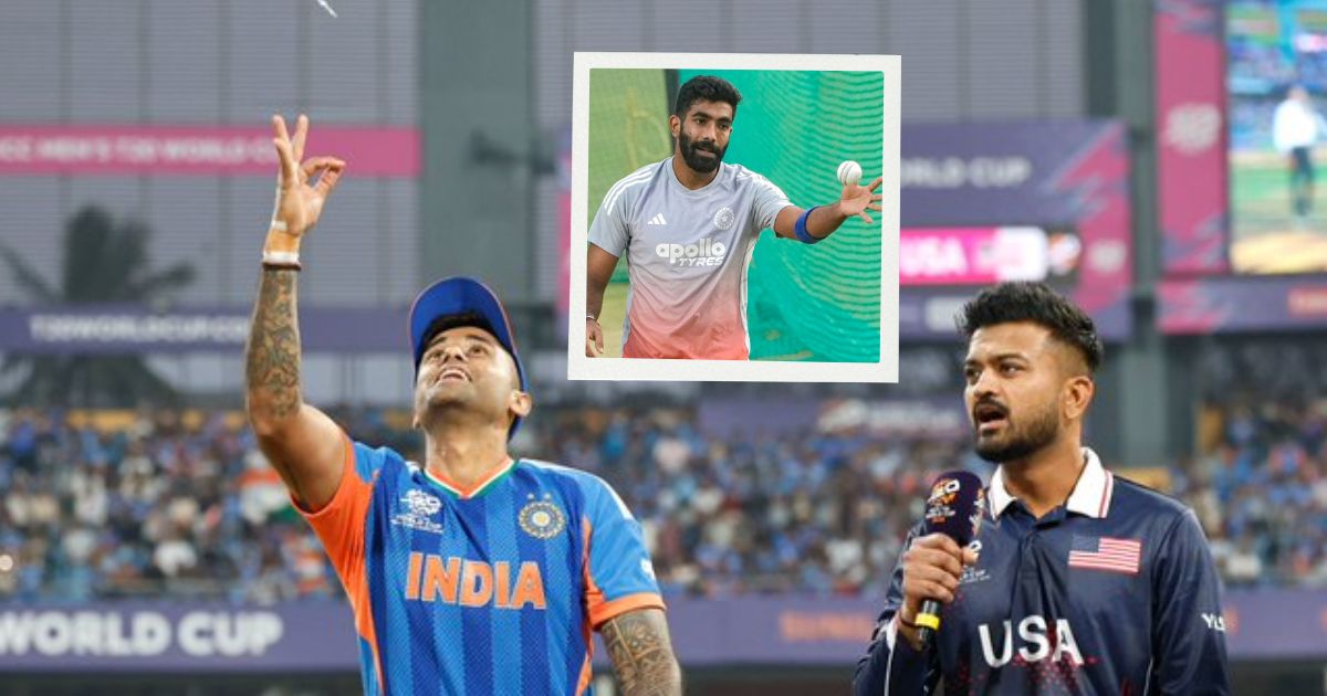 IND vs USA T20 World Cup Jasprit Bumrah Out Due To Fever : मुंबईतील वानखेडेच्या मैदानातून गत चॅम्पियन भारतीय संघ वर्ल्ड कप स्पर्धेच्या आपल्या माहिमेला सुरुवात करत आहे. पहिल्या सामन्यात सूर्यकुमार यादवनं नाणेफेकीचा कौल गमावला. इथं अमेरिकेचा कर्णधार मोनांक पटेल याने बाजी मारत पहिल्यांदा गोलंदाजी करण्याचा निर्णय घेतला. सराव सामन्यात पाहायला मिळालेला सलामीचा प्रयोगच या सामन्यातही पाहायला मिळणार असल्याचे टॉसनंतर सूर्यकुमार यादवनं स्पष्ट केले. याशिवाय जसप्रीत बुमराहशिवाय संघ मैदानात उतरणार असल्याची माहिती देताना त्याने वाइल्ड कार्ड एन्ट्री मारणाऱ्या मोहम्मद सिराजला प्लेइंग इलेव्हनमध्ये स्थान मिळाल्याचे त्याने दिली.