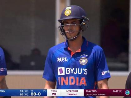 शुबमनने ३६ चेंडूंत ६ चौकार व २ षटकारांसह अर्धशतक पूर्ण केले. गिलचे हे वन डेतील पहिलेच अर्धशतक ठरले, तर भारताकडून वन डे क्रिकेटमध्ये अर्धशतक झळकावणारा तो ९७वा फलंदाज ठरला. वेस्ट इंडिजमध्ये वन डेत अर्धशतक झळकावणारा शुबमन हा विराट कोहलीनंतर ( २२ वर्ष व २१५ दिवस) दुसरा युवा फलंदाज ठरला. शुबमनचे वय २२ वर्ष व ३१७ दिवस आहे. Youngest Indian to Score 50+ in WI (ODI) भारताने १४ षटकांत फलकावर शतक झळकावले. विंडीजमध्ये वन डेत शतकी भागीदारी करणारी ही भारताची चौथी सलामीवीरांची जोडी ठरली. सौरव गांगुली/सचिन तेंडुलकर ( १९९७), धवन/ रोहित शर्मा ( २०१३), धवन/अजिंक्य रहाणे ( २०१७), धवन/अजिंक्य रहाणे ( २०१७) आणि धवन/गिल ( २०२२) यांनी शतकी भागीदारी केली.