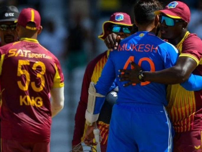 IND vs WI 1st T20I : वेस्ट इंडिज संघाने पहिल्या ट्वेंटी-२० सामन्यात भारतावर ४ धावांनी विजय मिळवून पाच सामन्यांच्या मालिकेत १-० अशी आघाडी घेतली. ब्रेंडन किंग ( २८) , निकोलस पूरन ( ४१), रोव्हमन पॉवेल ( ४८) यांनी चांगली फटकेबाजी केली. चहल व अर्शदीप यांनी प्रत्येकी दोन, तर कुलदीप यादव व हार्दिक पांड्या यांनी प्रत्येकी १ विकेट घेतली. विंडीजला ६ बाद १४९ धावांपर्यंत मजल मारता आली. तिलक वर्मा (३९), सूर्यकुमार यादव ( २१) आणि हार्दिक पांड्या ( १९) यांनी चांगला खेळ केला. संजू सॅमसन ( १२) रन आऊट झाला अन् सामना फिरला. अक्षर पटेल ( १३) व अर्शदीप सिंग ( १२) यांना पराभव टाळता आला नाही. भारताला ९ बाद १४५ धावा करता आल्या.