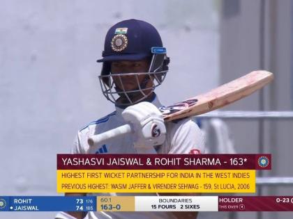 लंच ब्रेकनंतर दोघांची खेळाची गती वाढवली अन् दीडशतकी भागीदारी पूर्ण केली. ऑक्टोबर २०१९नंतर प्रथमच भारताच्या सलामीवीरांनी १५०+ भागीदारी केली. प्रतिस्पर्धी संघाच्या पहिल्या डावातील धावसंख्येचा भारताने एकही विकेट न गमावता केलेली ही पहिलीच वेळ ठरली. यशस्वी-रोहितने १६०वी धाव घेताच मोठा विक्रम नोंदवला गेला. वेस्ट इंडिजमध्ये १७ वर्षानंतर भारताकडून झालेली ही सलामीवीरांची सर्वोत्तम भागीदारी ठरली. यापूर्वी २००६मध्ये वीरेंद्र सेहवाग व वसीम जाफर यांनी सेंट ल्युसिया येथे १५९ धावांची सलामी दिली होती.