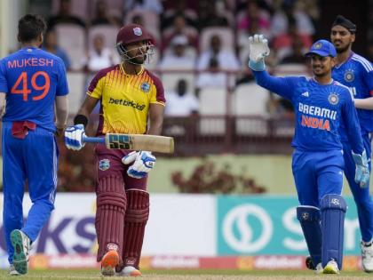 हार्दिक पांड्याने पहिल्याच षटकात ब्रेंडन किंग व जॉन्सन चार्ल्स या दोन फलंदाजांना माघारी पाठवले. कायले मायर्स ( १५) व निकोलस पूरन यांनी चांगली फटकेबाजी करून डाव सावरण्याचा प्रयत्न केला, परंतु अर्शदीप सिंगने ही जोडी तोडली. रवी बिश्नोईच्या पहिल्याच षटकात निकोलसने ४,६,०,४,४,० अशी फटकेबाजी केली. निकोलस व कर्णधार रोव्हमन पॉवेल ( २१) यांनी ३७ चेंडूंत ५७ धावांची भागीदारी केली. पूरनने भारताची डोकेदुखी वाढवली होती आणि त्यात शिमरोन हेटमायरची भर पडली. मुकेश कुमारने भारताला महत्त्वाची विकेट मिळवून दिली. पूरन ४० चेंडूंत ६ चौकार व ४ षटकारांसह ६७ धावांवर झेलबाद झाला.