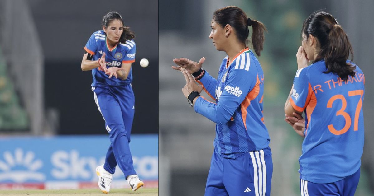 कमबॅकच्या सामन्यात रेणुका ठाकूर हिने पहिल्याच षटकात २ चौकारांसह १२ धावा खर्च केल्या. हसीना परेरानं तिच्या गोलंदाजीवर आक्रमक फलंदाजी केल्यावर हरमनप्रीत कौरनं पुढच्या षटकात तिच्याऐवजी दीप्तीच्या हाती चेंडू सोपवला. दीप्तीनं पाचव्या षटकात श्रीलंकन कर्णधार अट्टापटूच्या रुपात भारतीय संघाला पहिले यश मिळवून दिले. मग हरमनप्रीत कौरनं पुन्हा एकदा चेंडू रेणुकाच्या हाती सोपवला. सहाव्या षटकात तिने पहिल्या षटकात धुलाई करणाऱ्या हसिनी परेराला (Hasini Perera) दीप्ती करवी झेलबाद केले. याच षटकातील शेवटच्या चेंडूवर तिने हर्षिताला आपल्याच गोलंदाजीवर स्वत: अप्रतिम झेल घेत पॅव्हेलियनचा रस्ता दाखवला. पुढच्या दोन षटकात तिने आधी निलाक्षी डि सिल्वा आणि इमेशा दुलानी यांच्या विकेट्स घेत तिने ४ षटकात २१ धावा खर्च करत ४ विकेट्सचा डाव साधला.
