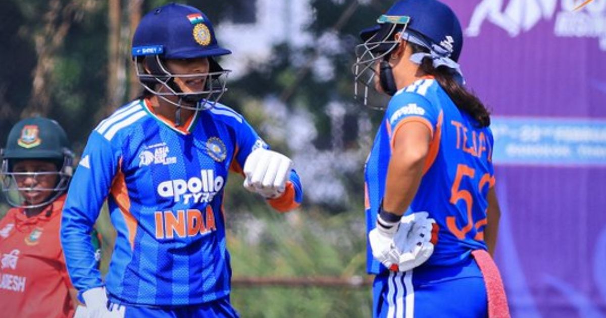 महिला आशिया कप रायझिंग स्टार्स स्पर्धेतील फायनलमध्ये नंदीनी कश्यप आणि वृंदा दिनेश या दोघींनी भारताच्या डावाची सुरुवात केली. नंदीनी १५ चेंडूत ८ धावांवर बाद झाली. या स्पर्धेत कमालीची कामगिरी करणारी वृंदाने १७ चेंडूत १९ धावांचे योगदान दिले. त्यानंतर तेजल आणि राधा यादवशिवाय अन्य कोणत्याही बॅटरला दुहेरी आकडा गाठता आला नाही. बांगलादेशकडून कर्णधार फहिमा खातून हिने सर्वाधिक ४ विकेट्सचा डाव साधला. याशिवाय फर्जाना आणि फतेमा यांनी प्रत्येकी १-१ विकेट घेतली.