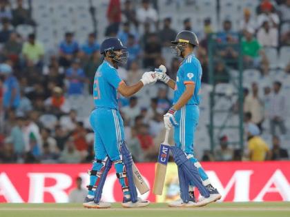 आशियाई क्रीडा स्पर्धेची तयारी म्हणून ही मालिका खेळणाऱ्या ऋतुराज गायकवाड आणि शुबमन गिल यांनी भारताला १४२ धावांची भागीदारी करून दिली. ऑस्ट्रेलियाविरुद्ध वन डे क्रिकेटमध्ये भारतीय सलामीवीरांनी सर्वाधिक १७ शतकी भागीदारी केल्या आहेत. भारताने आज इंग्लंडचा ( १६) विक्रम मोडला. ऋतुराज ७७ चेंडूंत १० चौकारांच्या मदतीने ७१ धावांवर एडम झम्पाच्या चेंडूवर LBW झाला. शुबमनही ६३ चेंडूंत ६ चौकार व २ षटकारांसह ७४ धावांवर झम्पाच्या गोलंदाजीवर त्रिफळाचीत झाला. इशान किशन व लोकेश राहुल यांनी डाव सावरला होता, परंतु पॅट कमिन्सने ही जोडी तोडली. इशान १८ धावांवर झेलबाद झाला.