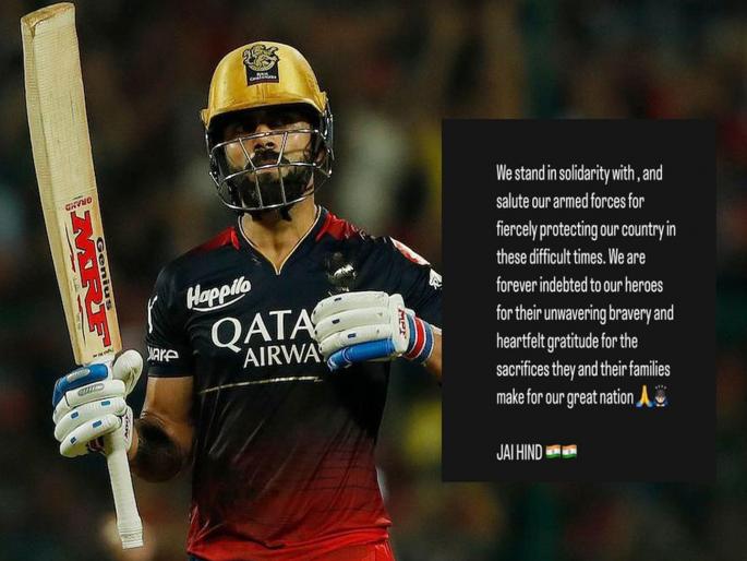 विराट कोहलीने इन्स्टाग्रामवर भारतीय लष्कराच्या शौर्याला अभिवादन करत एक पोस्ट लिहिली आहे. त्यात तो म्हणाला की, कठीण काळात आपल्या देशाचं रक्षण करत असलेल्या सशस्त्र दलांसोबत आम्ही एकजुटीने उभे आहोत. आम्ही आमच्या नायकांच्या अतूट शौर्य आणि देशासाठी दिलेल्या बलिदानासाठी त्यांचे कायम ऋणी राहू. जय हिंद.