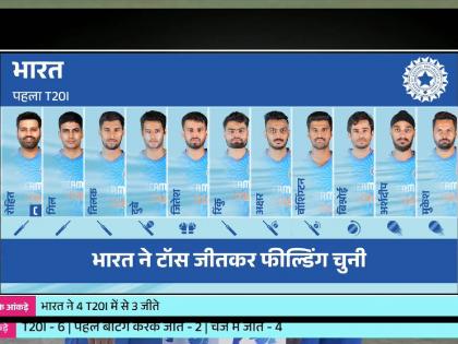 विराटच्या गैरहजेरीत यशस्वी जैस्वाल व रोहित ही जोडी सलामीला येईल असे मुख्य प्रशिक्षक राहुल द्रविडने सांगितले होते. पण, आज यशस्वीला प्लेइंग इलेव्हनमधून बाहेर बसवले गेले आहे. आजच्या सामन्यात चार खेळाडूंना संधी न मिळाल्याचे रोहितने सांगितले. यामध्ये संजू सॅमसन, यशस्वी जैस्वाल, आवेश खान व कुलदीप यादव यांचे नाव आहे. उजव्या मांडीच्या दुखण्यामुळे यशस्वी पहिल्या T20I साठी निवडीसाठी अनुपलब्ध नसल्याचे बीसीसीआयने सांगितले. आता गिल व रोहित सलामीला येतील.