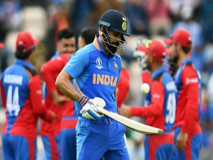 रोहित शर्मा लवकर माघारी परतल्यानंतर विराटने दुसऱ्या विकेटसाठी लोकेश राहुलसह 57 आणि तिसऱ्या विकेटसाठी विजय शंकरसह 58 धावांची भागीदारी केली. दरम्यान त्याने वन डे क्रिकेटमधील 52वे अर्धशतकही पूर्ण केले. वर्ल्ड कप स्पर्धेतील हे त्याचे चौथे, तर अफगाणिस्तानविरुद्ध पहिलेच अर्धशतक ठरले. विराटची ही झुंज मोहम्मद नबीनं संपुष्टात आणली. विराटने 63 चेंडूंत 5 चौकारांसह 67 धावा केल्या.
