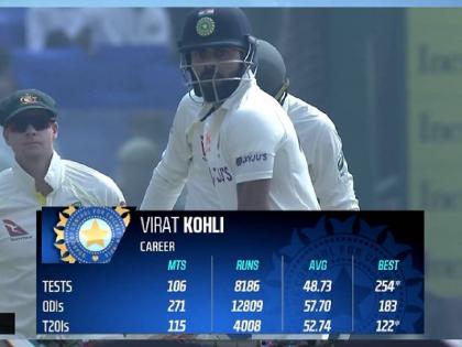 विराटने पुजारासह डाव सावरला अन् आंतरराष्ट्रीय क्रिकेटमध्ये सर्वात मोठा पराक्रम केला. आंतरराष्ट्रीय क्रिकेटमध्ये सर्वात कमी डावांत ( Innings) मध्ये २५ हजार धावा पूर्ण करणारा फलंदाज तो ठरला. त्याने महान फलंदाज सचिन तेंडुलकचा विक्रम मोडला. विराटने ५४९ डावांत हा टप्पा ओलांडला. सचिनला ५७७ डाव खेळावे लागले होते. शिवाय वयाच्या ३४ पर्यंत सर्वाधिक धावा करणाऱ्या फलंदाजांत विराट दुसऱ्या स्थानावर पोहोचला. त्याने रिकी पाँटिंगचा २४१९३ धावांचा विक्रम मोडला.  Ind vs aus scorecard, Ind vs aus live  match
