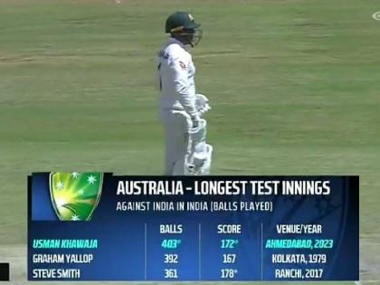 अश्विनने तिसरा धक्का देताना मिचेल स्टार्कला ( ६) बाद केले, श्रेयस अय्यरने सुरेख झेल टिपला. बॉर्डर गावस्कर ट्रॉफीतील ही अश्विनची १११ वी विकेट ठरली. त्याने अनिल कुंबळेच्या १११ विकेट्सची बरोबरी केली. नॅथन लाएन ११३ विकेटस आघाडीवर आहे. ख्वाजा मात्र खिंड लढवतोय आणि त्याने ४००+ चेंडूंचा सामना करताना इतिहास घडविला. ऑस्ट्रेलियाच्या एकाही फलंदाजाला भारतात असा पराक्रम करता आलेला नाही. यापूर्वी १९७९मध्ये ग्रॅहम यालोप यांनी ३९२ चेंडूंचा सामना केला होता. शिवाय त्याने यालोप यांचा १६७ धावांचा विक्रमही मोडला. ख्वाजा १७०* धावांवर खेळतोय. Ind vs aus 4th test match live score