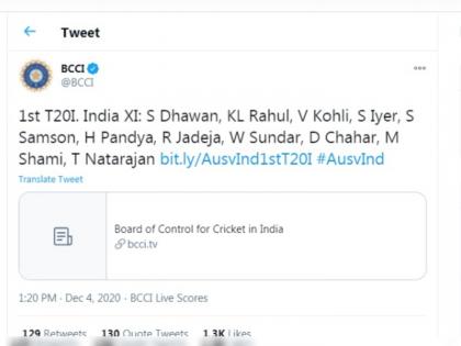ऑस्ट्रेलियाविरुद्धच्या वन डे मालिकेतील निराशाजनक कामगिरीनंतर टीम इंडिया नव्या दमानं ट्वेंटी-20 मालिकेसाठी सज्ज झाली आहे. ऑस्ट्रेलियानं तीन सामन्यांची वन डे मालिका २-१ अशी जिंकली. भारताला पहिल्या दोन वन डे सामन्यात लाजीरवाणा पराभव पत्करावा लागला. तिसऱ्या सामन्यात टीम इंडियानं विजय मिळवला आहे आणि त्याच सकारात्मकतेनं ते ट्वेंटी-20 मालिकेत मैदानावर उतरणार आहेत. ऑस्ट्रेलियाचा नाणेफेक जिंकून प्रथम क्षेत्ररक्षणाचा निर्णय, टीम इंडिया तगडं आव्हान ठेवण्यासाठी सज्ज झाली आहे. पण, सामन्यापूर्वी BCCIच्या ट्विटनं एकच गोंधळ उडवला.