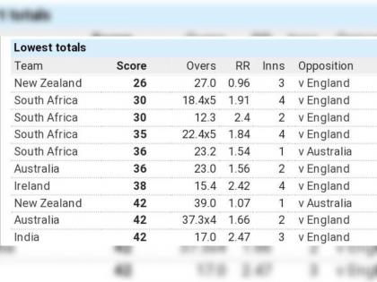 भारताची कसोटी क्रिकेटमधील ही सर्वात निचांक कामगिरी ठरली. यापूर्वी १९७४साली इंग्लंडविरुद्ध भारताचा डाव ४२ धावांत गडगडला होता.