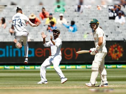 खेळपट्टीचा बदललेला अंदाज पाहता कर्णधार अजिंक्यनं पुन्हा बुमराहच्या हाती चेंडू सोपवला आणि त्याचा हाही डाव यशस्वी ठरला. बुमरानं हेडला ( ३८) माघारी जाण्यास भाग पाडले. अजिंक्यनं स्लीपमध्ये सुरेख झेल टिपटून हेड व लाबुशेन यांची ८६ धावांची भागीदारी संपुष्टात आणली. मोहम्मद सिराजनं पदार्पणात पहिली विकेट घेतली. लाबुशेनला ४८ धावांवर त्यानं शुबमन गिलकरवी झेलबाद केले. दोन्ही पदार्पणवीरांनी टीम इंडियाला हे यश मिळवून दिलं. सिराजच्या या विकेटनं ऑस्ट्रेलियाची अवस्था ५ बाद १३६ अशी झाली. टी टाईम ब्रेकसाठी खेळाडू ड्रेसिंग रुमकडे जात असताना अजिंक्यनं पदार्पणवीर सिराजला टीम इंडियाला लीड करण्याचा मान दिला. त्याचा हा फोटो सोशल मीडियावर व्हायरल झाला आहे.