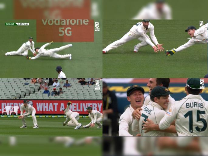 दुसऱ्या दिवसाच्या पहिल्याच चेंडूवर पुजारासाठी ऑसींनी DRS घेतला, परंतु तो अपयशी ठरला. २२व्या षटकाच्या अखेरच्या चेंडूवर ऑसींना दिवसाचे पहिले यश मिळाले. ६५ चेंडूंत ८ चौकारांसह ४५ धावा करणारा गिल कमिन्सच्या गोलंदाजीवर यष्टिरक्षक टीम पेनच्या हाती झेल देऊन माघारी परतला. त्याच पेननं पुजाराचे काही सोपे झेल सोडले. पण, त्याची भरपाई त्यानं अफलातून कॅच घेऊन केली. कमिन्सच्या इनस्वींग चेंडूनं पुजाराच्या बॅटचे चुंबन घेतले आणि तो पहिल्या स्लीपच्या दिशेनं फिरला. पेननं चपळाईनं त्या दिशेनं झेप घेत भारताला धक्का दिला. पुजारा ७० चेंडूंत १७ धावा करून बाद झाला.