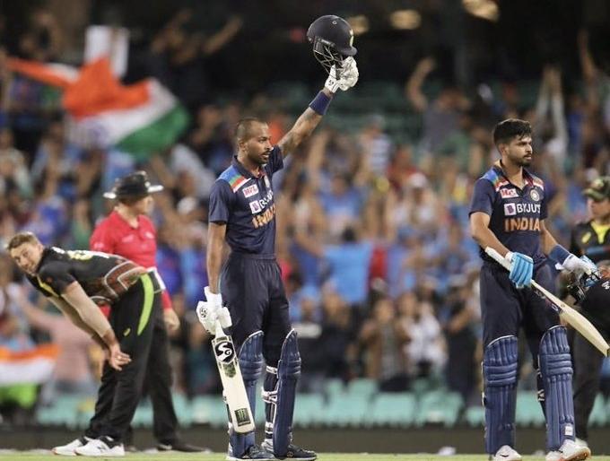 भारतीय संघाने शुक्रवारी कॅनबेरा येथे पहिल्या टी-२० सामन्यात ११ धावांनी विजय मिळविला होता. भारताला विजयासाठी अखेरच्या २ षटकात २५ धावांची गरज होती. त्यात १८ व्या षटकात भारताने १२ धावा वसूल केल्या. यात पांड्याने २ चौकार मारले. २२ चेंडूत नाबाद ४२ धावा करणारा हार्दिक पांड्या सामनावीर पुरस्काराचा मानकरी ठरला. भारताला अखेरच्या षटकात १४ धावांची गरज असताना पांड्याने २ षटकारांसह १४ धावा वसूल करीत भारताच्या विजयावर शिक्कामोर्तब केले. लक्ष्याचा पाठलाग करताना भारताला पहिल्या दोन षटकात एकही चौकार मारता आला नाही. मात्र, त्यानंतर धवन (५२) आणि लोकेश राहुल (३०) यांनी चौकार व षटकारांचा पाऊस पाडला. राहुलने फ्री हिटवर अँड्र्यू टाय याला कव्हरला चौकार मारत तर, धवनने ग्लेन मॅक्सवेल याला दोन चौकार व एक षटकार ठोकत आक्रमक पवित्रा अवलंबला.