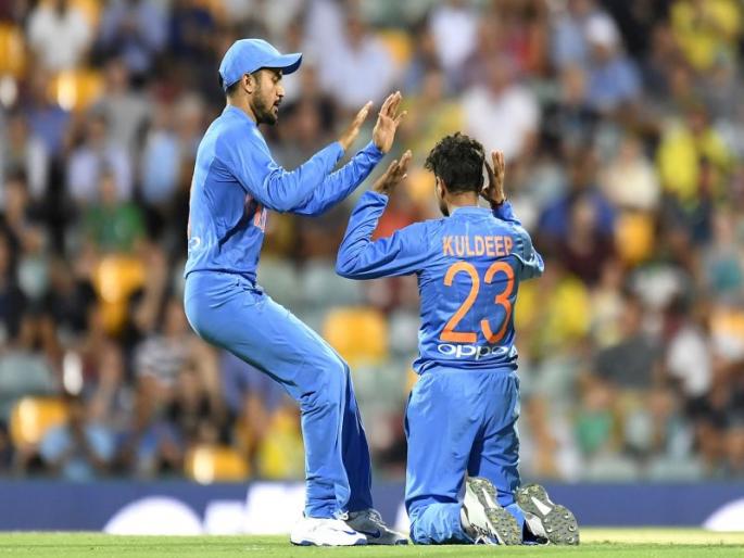 ब्रिस्बेन, भारत विरुद्ध ऑस्ट्रेलिया : ऑस्ट्रेलियाला सलग पाच ट्वेंटी-20 सामन्यात पराभूत करण्याची संधी भारतीय संघाने बुधवारी गमावली. पावसाच्या व्यत्ययात पार पडलेल्या या सामन्यात ऑस्ट्रेलियाने अवघ्या चार धावांनी विजय मिळवून मालिकेत 1-0 अशी आघाडी घेतली आहे. तरीही भारताचा फिरकीपटू कुलदीप यादवने या सामन्यात विश्वविक्रमाची नोंद केली. पहिल्या पंधरा ट्वेंटी-20 सामन्यांत सर्वात प्रभावी गोलंदाजाचा मान कुलदीपने पटकावला आहे.