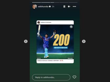 यानंतर, अदिती हुंडियाने इशान किशनचा आणखी एक फोटो शेअर केला आहे. अदिती हुंडियाने BCCI च्या इंस्टाग्राम अकाउंटवर शेअर करण्यात आलेला इशान किशनचा आणखी एक फोटोही शेअर केला आहे. यात तो टीम इंडियाच्या जर्सित द्विशतक झळकावल्यानंतर बॅट उंचावताना दिसत आहे. इशान किशनची गर्लफ्रेड अदिती हुंडिया पेशाने एक मॉडेल आहे. तसेच ती सोशल मीडियावरही प्रचंड अॅक्टिव्ह असते.