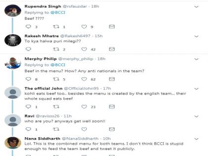 भारताने सामन्यावर पकड घेण्याची संधी गमावल्यानंतर नेटिझन्सनी BCCI आणि टीम इंडियाचा चांगलाच समाचार घेतला. त्यात मेन्यूमध्ये 'braised beef pasta' हा पदार्थ पाहिल्यानंतर नेटिझन्स चांगलेच संतापले. अर्थात हा मेन्यू दोन्ही संघासाठी असल्याने कोणी काय खावे हा प्रत्येकाचा वैयक्तिक प्रश्न होता. पण भारतीय संघाच्या लाजीरवाण्या कामगिरीचा सगळा राग नेटिझन्सने सोशल मीडियावर काढला.