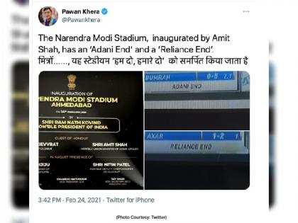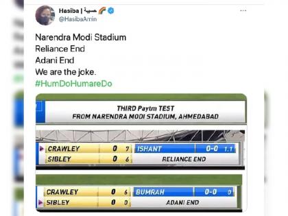 India vs England 3rd Test Live Score : नव्यानं तयार करण्यात आलेल्या अहमदाबाद येथील पूर्वीच्या मोटेरा स्टेडियमचं नाव आता नरेंद्र मोदी स्टेडियम असं ठेवण्यात आलं आहे. राष्ट्रपती रामनाथ कोविंद यांनी जगातील सर्वात मोठ्या क्रिकेट स्टेडियमचं औपचारिक उद्धाटन केलं. २४ फेब्रुवारीपासून या स्टेडियमवर भारत-इंग्लंड ( Ind vs Eng Pink Ball Test) डे नाईट कसोटी सामना सुरू झाला. पहिल्या दिवशी भारतानं वर्चस्व गाजवलं. या स्टेडियमचं नाव नरेंद्र मोदी स्टेडियम असं ठेवण्यात आल्यानंतर विरोधकांनी टीका केली. पण, सोशल मीडियावरही एक चर्चा रंगली. नरेंद्र मोदी स्टेडियमवर रिलायन्स एंड ( Reliance End ) व अदानी एंड ( Adani End) अशी नाव पाहून नेटीझन्सही सुसाट सुटले.