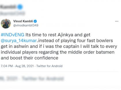 भारताचा माजी फलंदाज विनोद कांबळी यानंही अजिंक्य रहाणेला विश्रांती देण्याची गरज असल्याचे मत व्यक्त केले आहे