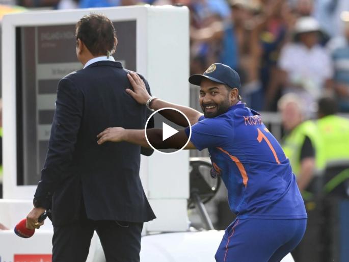 Rishabh Pant Champagne Gift to Ravi Shastri : भारतीय संघाने वन डे मालिका जिंकल्यानंतर रिषभ पंत व विराट कोहली यांनी माजी मुख्य प्रशिक्षक रवी शास्त्री यांना ट्रिट दिली. भारताने तिसऱ्या वन डे सामन्यात इंग्लंडवर ५ विकेट्स राखून विजय मिळवताना मालिका २-१ अशी जिंकली. ८ वर्षांनंतर भारताने इंग्लंडमध्ये वन डे मालिका जिंकण्याचा पराक्रम केला. रिषभ पंत ( Rishabh Pant) व हार्दिक पांड्या ( Hardik Pandya) हे या विजयाचे शिल्पकार ठरले. टीम इंडियाच्या खेळाडूंनी त्याचं जंगी सेलिब्रेशनही केलं आणि यात रवी शास्त्रींची चांदी झाली. विराटने गुपचूप त्यांना शॅम्पेन हवी आहे का विचारलं, तर रिषभने तर मॅन ऑफ दी मॅचसाठी मिळालेली शॅम्पेन शास्त्रींनी भेट दिली. सोशल मीडियावर हा व्हिडीओ व्हायरल झाला आहे.