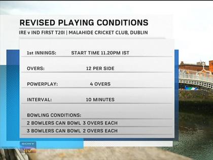आता पावसाने पूर्णपणे विश्रांती घेतली आहे आणि मैदानावरील कव्हर्स काढले गेले आहेत. खेळपट्टी सुकवण्याचं काम जोरात सुरू असून ११.२० मिनिटांनी सामन्याला सुरुवात होणार आहे. ही लढत १२-१२ षटकांची होणार असून १ ते ४ षटकं पॉवर प्ले राहणार आहे. तीन गोलंदाजांना प्रत्येकी दोन, तर दोन गोलंदाजांना प्रत्येकी ३ षटकं फेकता येणार आहेत.