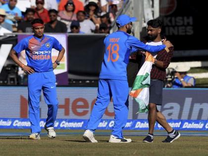 मात्र भारतीय संघ क्षेत्ररक्षण करत असताना पॅव्हेलियनमधून एक प्रेक्षक थेट मैदानावर आला आणि कोहली समोर येऊन उभा राहिला. कोहलीही सुरुवातीला हडबडला, परंतु त्याने त्वरित त्या चाहत्याला समजावून मैदान सोडण्यास सांगितले. यावेळी चाहत्याच्या चेहऱ्यावरील आनंद गगनात मावणारा नव्हता.