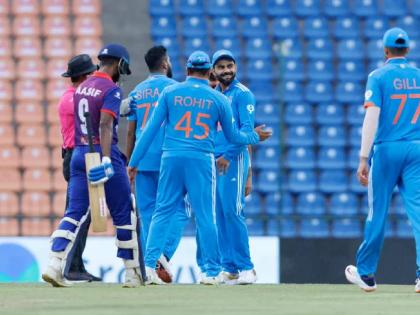 तत्पूर्वी, नेपाळच्या फलंदाजांनी आज आत्मविश्वासाने खेळ केला. सलामीवीर कुशल भुर्तेल ( ३८) आणि आसिफ शेख यांनी ६५ धावांची भागीदारी केली. आसिफने ९७ चेंडूंत ८ चौकारांच्या मदतीने ५८ धावा केल्या. भारतीय खेळाडूंनी पहिल्या ५ षटकांत ३ झेल सोडले. गुलशन झा ( २३) याने चांगली फटकेबाजी केली. दिपेंद्र सिंग ऐरी ( २९) आणि सोमपाल कामी यांनी सातव्या विकेटसाठी अर्धशतकी भागीदारी केली. सोमपालने ५६ चेंडूंत ४८ धावा केल्या आणि संघाला २३० धावांचा समाधानकारक पल्ला गाठून दिला. रवींद्र जडेजा आणि मोहम्मद सिराज यांनी प्रत्येकी ३ विकेट्स घेतल्या.