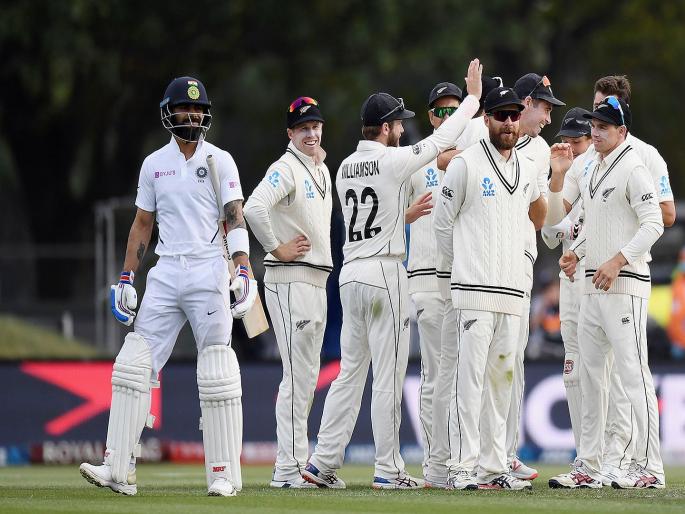 दुसऱ्या डावात मयांक अग्रवाल अपयशी ठरला. ट्रेंट बोल्टनं त्याला ३ धावांवर माघारी पाठवले. त्यानंतर पृथ्वी शॉ ( १४) टीम साऊदीच्या गोलंदाजीवर माघारी परतला. कॉलीन डी ग्रँडहोमनं टीम इंडियाचा कर्णधार विराटला ( १४) पायचीत केले. त्यानंतर अजिंक्य रहाणे आणि चेतेश्वर पुजारा यांनी संयमी खेळ दाखवला. पण, रहाणे ( ९) आणि पुजारा ( २४) हे दोघेही माघारी परतले. टीम इंडियानं दिवसअखेर ६ बाद ९० धावा करताना ९७ धावांनी आघाडी वाढवली होती. तिसऱ्या दिवसाच्या सकाळच्या सत्रात रिषभ पंत आणि हनुमा विहारी यांना खिंड लढवायची होती, परंतु तेही अपयशी ठरले. भारताच्या तळाच्या चार फलंदाजांना तिसऱ्या दिवशी केवळ ३४ धावा जोडता आल्या. भारताचा दुसरा डाव १२४ धावांत गडगडला. न्यूझीलंडसमोर विजयासाठी केवळ १३२ धावांचे आव्हान ठेवण्यात टीम इंडियाला यश आले. ट्रेंट बोल्टने चार आणि टीम साऊदीने ३ विकेट्स घेतल्या.