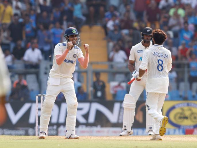 India vs New Zealand, 3rd Test NZ 235 all out Ravindra Jadeja picks fifer :  मुंबईच्या वानखेडे स्टेडियमवर रंगलेल्या तिसऱ्या कसोटी सामन्यात सामन्यात भारतीय संघाने पाहुण्या न्यूझीलंड संघाला मालिकेत पहिल्यादाच अडीचशे धावांच्या रोखले आहे. रवींद्र जाडेजाच्या फिरकीतील जादू आणि वॉशिंग्टनच्या सुंदर गोलंदाजीच्या जोरावर भारतीय संघाने न्यूझीलंडचा पहिला डाव २३५ धावांत आटोपला. जड्डूनं १४ व्या वेळी पाच किंवा त्यापेक्षा अधिक विकेट्स घेण्याचा खास पराक्रम करून दाखवला. दुसऱ्या बाजूला वॉशिंग्टन सुंदरनं ४ विकेट्स घेतल्या. याशिवाय आकाश दीपनं एक विकेट्स घेतली.