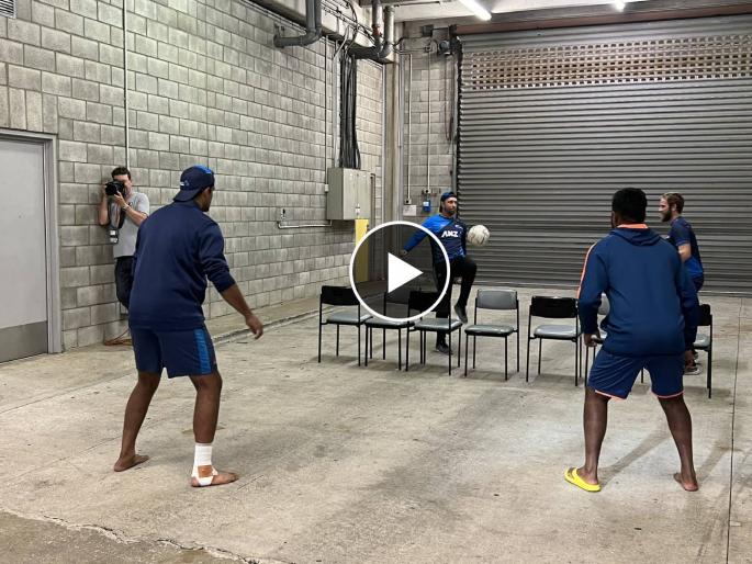 India vs New Zealand T20I series: Live Scorecard - नवा कर्णधार, नवी टीम अन् नवा जोश.... टीम इंडियाच्या भविष्याच्या दृष्टीने टाकलेल्या पावलांची आज पहिली परीक्षा आहे. हार्दिक पांड्याच्या नेतृत्वाखाली भारताची युवा ब्रिगेड न्यूझीलंडचा त्यांच्याच घरच्या मैदानावर सामना करणार आहे. पण, पावसामुळे या सामन्यात व्यत्यय निर्माण झाला आहे. वेलिंग्टनमध्ये सध्या मुसळधार पाऊस सुरू आहे आणि त्यामुळेच नाणेफेकीला उशीर होतोय. त्यामुळे भारत-न्यूझीलंडचे खेळाडू फुटबॉल व्हॉलीबॉल खेळताना दिसत आहेत.