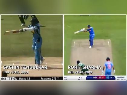रोहितने 113 चेंडूंत 14 चौकार आणि 3 षटकारांच्या मदतीने चोपल्या 140 धावा चोपल्या. त्यानं लोकेश राहुलसह सलामीला 136 धावांची विक्रमी भागीदारी केली. वर्ल्ड कप स्पर्धेत भारतीय सलामीवीरांनी केलेली ही सर्वोत्तम भागीदारी ठरली. रोहितनं या खेळीदरम्यान 2003च्या वर्ल्ड कप स्पर्धेतील तेंडुलकरनं पाकच्या शोएब अख्तरला मारलेल्या अपरकटची आठवण करून देणारा फटका मारला. हसन अलीच्या शॉर्ट पीच चेंडूवर रोहितनं अपरकट मारत खणखणीत षटकार ठोकला. 16 वर्षांपूर्वी तेंडुलकरनेही असाच अपरकट अख्तरच्या गोलंदाजीवर मारला होता.