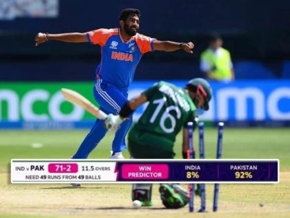 Win Predictor, India vs Pakistan, T20 World Cup 2024: क्रिकेट हा अनिश्चिततांचा खेळ आहे. त्यामुळे या खेळात कधीही कोणताही प्रकार घडू शकतो. एखादा सामना जिंकायचा असेल तर त्यासाठी केवळ चांगली कामगिरी आणि नशीबाची साथ असून चालत नाही, तर विजय मिळवण्याची जिद्द असावी लागते. जिद्द आणि इच्छाशक्तीच्या जोरावर पराभवाच्या छायेत असलेला संघदेखील विजयश्री खेचून आणू शकतो. असाच काहीसा प्रकार पाकिस्तान विरूद्धच्या सामन्यात टीम इंडियाने केला. सामना कोण जिंकेल, याबाबत सामना सुरु असताना प्रेक्षकांचा कौल विचारला गेला त्यावेळी भारताच्या बाजूने केवळ ८ टक्के लोकांनी मत दिले होते. पण अखेरीस जिद्दीच्या जोरावर भारताने सामना जिंकून दाखवला.