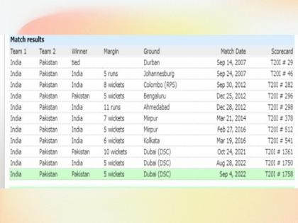 भारत-पाकिस्तान यांच्यातल्या ट्वेंटी-२० वर्ल्ड कप स्पर्धेतील आकडेवारी