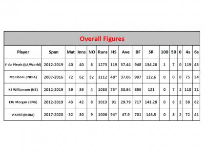 आंतरराष्ट्रीय ट्वेंटी-20त कर्णधार म्हणून सर्वात कमी डावांमध्ये 1000 धावा करणाऱ्या फलंदाजांत विराटनं अव्वल स्थान पटकावलं. त्यानं 30 डावांमध्ये 1000 धावा केल्या. यासह त्यानं दक्षिण आफ्रिकेचा कर्णधार फॅफ ड्यू प्लेसिसचा ( 31 डाव) विक्रम मोडला. या विक्रमात न्यूझीलंडचा केन विलियम्सन ( 36 डाव) तिसऱ्या, इंग्लंडचा इयॉन मॉर्गन ( 42 डाव) चौथ्या, आयर्लंडचा विलयम पोर्टरफिल्ड ( 54 डाव ) पाचव्या आणि भारताचा महेंद्रसिंग धोनी ( 57 डाव) सहाव्या क्रमांकावर आहेत.