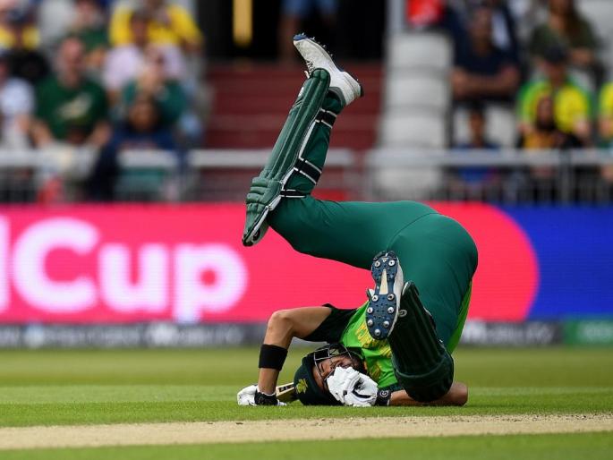 लीड्स, आयसीसी वर्ल्ड कप 2019 : क्रिकेट हा अनिश्चिततेचा खेळ आहे. पण क्रिकेटच्या मैदानात काही खेळाडूंना जीवही गमवावा लागला आहे. आज सुरु असलेल्या ऑस्ट्रेलिया आणि दक्षिण आफ्रिका यांच्यातील सामन्यात एक अशीच घटना घडल्याचे पाहायला मिळाले. पण फक्त दैव बलवत्तर म्हणून फलंदाजाचा जीव वाचल्याचे पाहायला मिळाले.