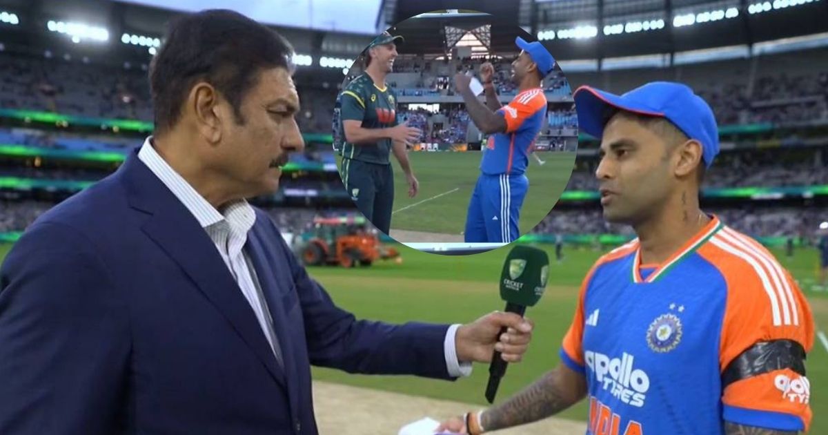 India vs vs Australia 3rd T20I I : होबार्टच्या मैदानातील तिसऱ्या टी-२० सामन्यात अखेर भारतीय संघाचा कर्णधार सूर्यकुमार यादवनं नाणेफेकीचा कौल जिंकला आहे. टॉस जिंकताच सूर्यानं ऑस्ट्रेलियन कर्णधार मिचेल मार्शसमोर सेलिब्रेशन केल्याचे पाहायला मिळाले. एवढेच नाही तर ऑस्ट्रेलियन कर्णधारही सूर्याच्या आनंदात सामील झाला. त्याने सूर्याला जादूची झप्पी दिल्याचेही पाहायला मिळाले.