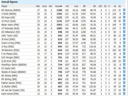 या मालिकेपूर्वी वन डे क्रिकेट स्पर्धेत 2019मध्ये सर्वाधिक धावा करणाऱ्या फलंदाजांमध्ये विराट अव्वल स्थानी होता. त्याच्या नावावर 23 सामन्यांत 64.40च्या सरासरीनं 1288 धावा होत्या. या शर्यतीत रोहित 1232 धावांसह दुसऱ्या स्थानावर होता. रोहितनं 25 सामन्यांत 53.56च्या सरासरीनं या धावा केल्या होत्या. त्यामुळे या मालिकेनंतर या क्रमवारीत अदलाबदल होते, की स्थान तसेच राहते, याची उत्सुकता लागली होती. विराटला पहिल्या वन डे सामन्यात केवळ चार धावा करता आल्या, तर रोहितनं 36 धावा केल्या.