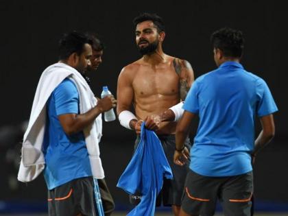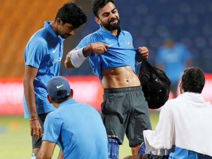 कोहलीने एक फोटो आपल्या इंस्टाग्रामवर टाकला आहे. या फोटोमध्ये विराटसह मयंक अग्रवाल, जसप्रीत बुमरा, इशांत शर्मा, रिषभ पंत, अजिंक्य रहाणे, रोहित शर्मा आणि लोकेश राहुल दिसत आहेत. भारतीय खेळाडूंबरोबर सपोर्ट स्टाफही दिसत आहे. यावेळी सर्वांनी आपली टी-शर्ट्स काढली होती. त्यामुळे कोहलीचे 8 पॅक अॅब्स दिसत होते. या फोटोमध्ये आता आपले पोट दिसणार म्हणून रोहित राहुल आणि रहाणे यांच्या मागे लपताना दिसला.