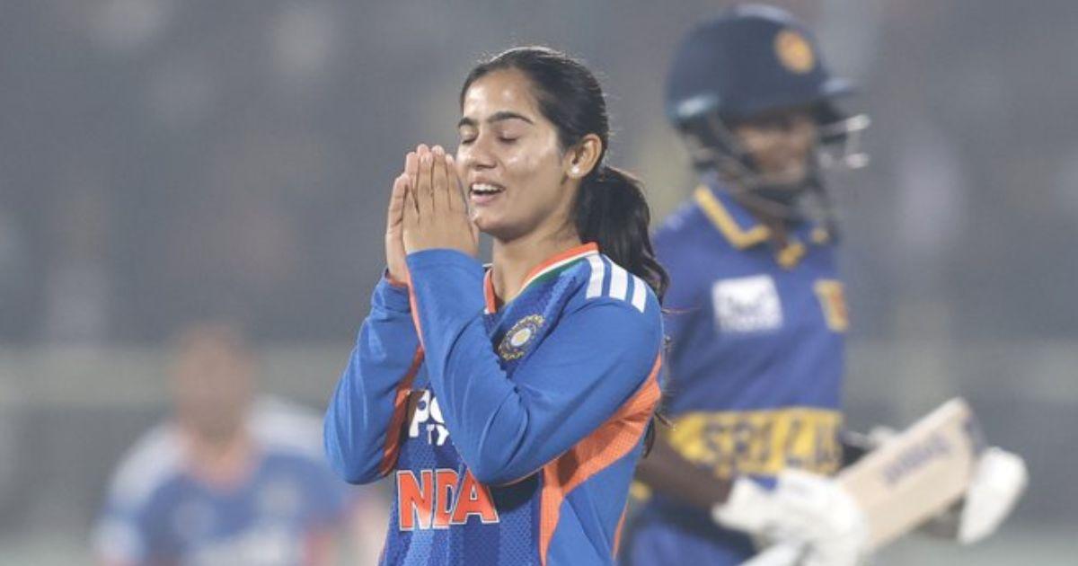 दुसऱ्या सामन्यात वैष्णवीनं उघडलं विकेट्सच खातं; बॅटरनं हवेत चेंडू मारल्यावर श्री चरणीकडे पाहून जोडले हात