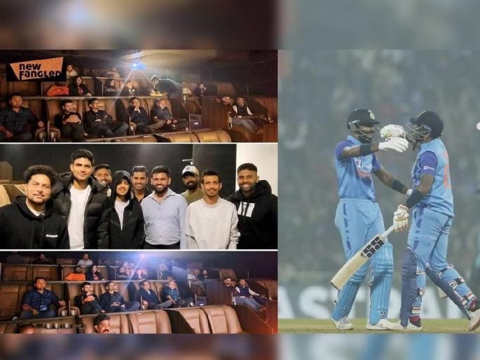 अहमदाबाद: भारत आणि न्यूझीलंड (IND vs NZ) यांच्यातील तीन सामन्यांच्या ट्वेंटी-20 मालिकेतील शेवटचा सामना 1 फेब्रुवारी रोजी होणार आहे. ज्यासाठी दोन्ही संघ आधीच अहमदाबादला पोहोचले आहेत. या निर्णायक सामन्यापूर्वी टीम इंडियाच्या अनेक खेळाडूंनी चित्रपटगृहात जाऊन नुकताच प्रदर्शित झालेला पठाण चित्रपट पाहिला. चित्रपटगृहातील खेळाडूंचे काही फोटो सोशल मीडियावर व्हायरल होत आहेत.