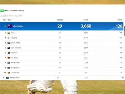 आयसीसीने दोन तासांनंतर त्यांच्या वेबसाईटवरील चुक दुरूस्त केली अन् ऑस्ट्रेलिया १२६ पॉईंटसह अव्वल स्थानावर आला. भारत ११५ पॉईंटसह दुसऱ्या स्थानावर सरकला.