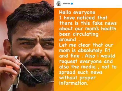 पण, विराटचा भाऊ विकास याने हे वृत्त खोडून काढले आहे. त्याने पोस्ट लिहिली की, आईच्या प्रकृतीवरून काही चुकीच्या बातम्या पसरत असल्याचे माझ्या निदर्शनास आले आहे. मला हे स्पष्ट करू द्या की आईची प्रकृती चांगली आहे. माझी लोकांना आणि मीडियाला विनंती आहे की कोणत्याही प्रकारची खातरजमा न करता अशा बातम्या पसरवू नका.