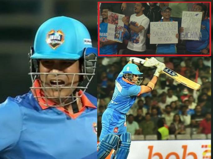 नवी मुंबईच्या डीवाय पाटील स्टेडियमवर रंगलेल्या सामन्यात मास्टर ब्लास्टर सचिनची झलक पाहण्यासाठी चाहत्यांनी मोठी गर्दी केल्याचा सीन पाहायला मिळाला. अजूनही क्रिकेट हा आमचा धर्म अन् सचिन आमचा देव या आशयाची फलकबाजी करत चाहत्यांनी मास्टर ब्लास्टरवरील प्रेम दाखवून दिले.